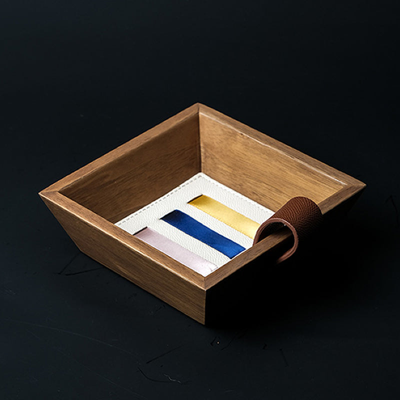 Leather Color-blocked Ribbon Tray, Jewelry Organizer Dish